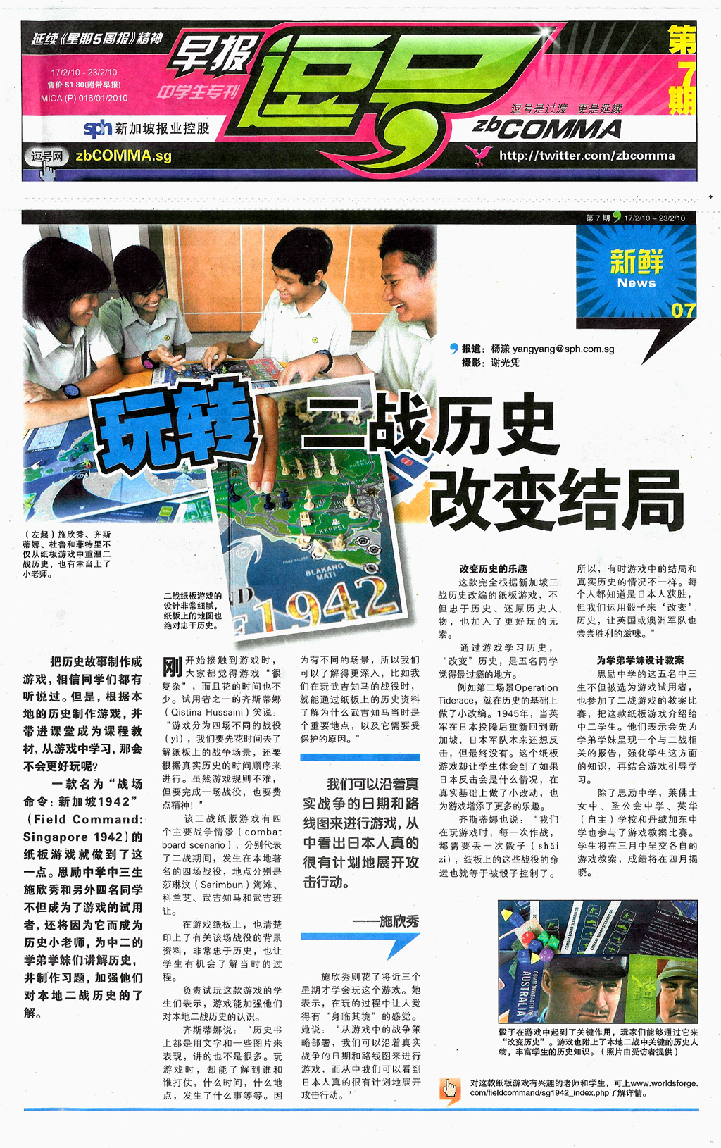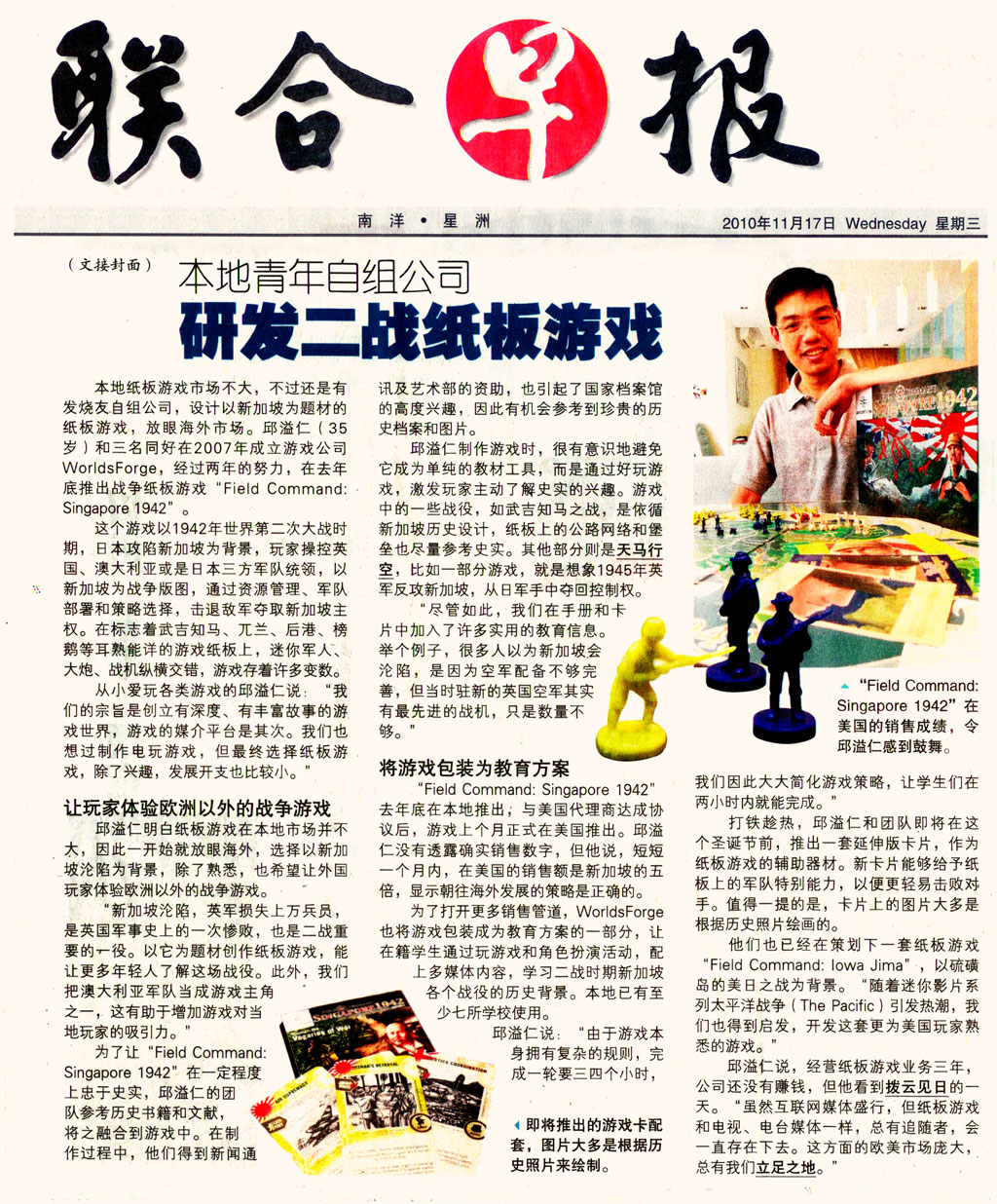 本地青年自组公司,研发二战纸板游戏 (联合早报