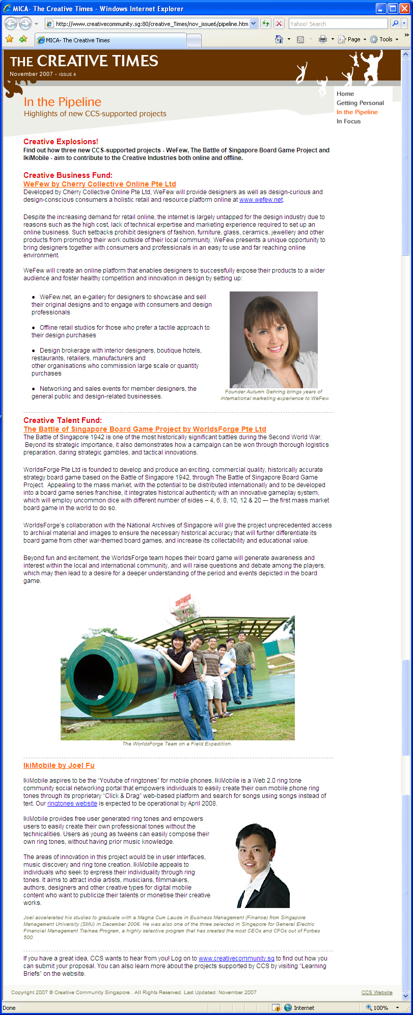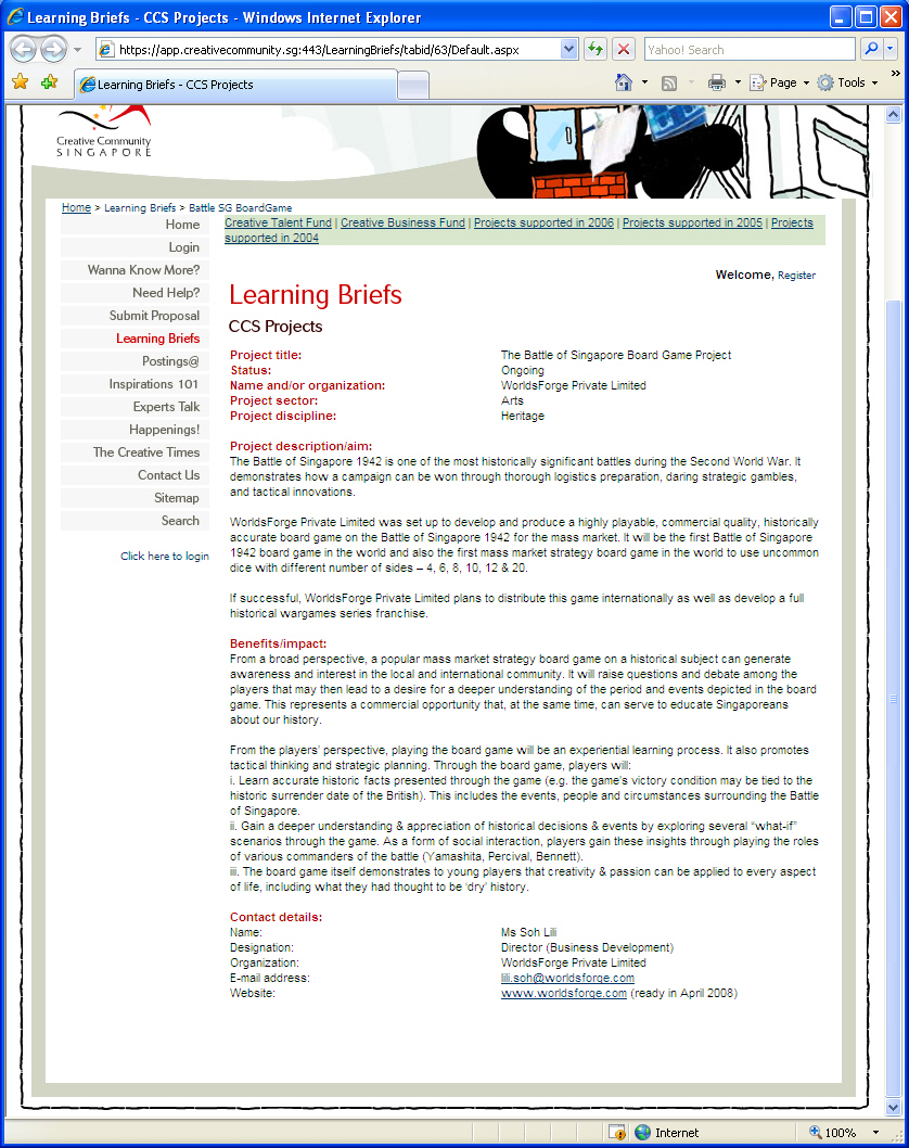 Creative Talent Fund: The Battle of Singapore Boardgame by Worldsforge Pte Ltd (The Creative Times, Issue 6)